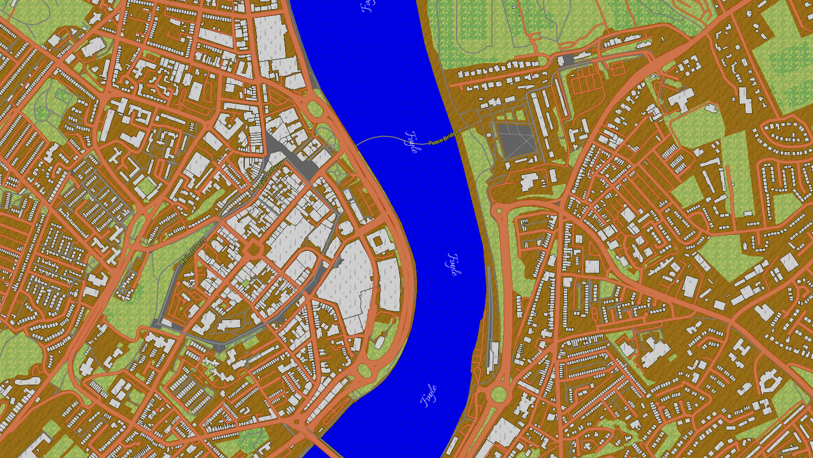 This more zoomed in shot of Derry, Northern Ireland shows the texture of the buildings that is meant to be smoother.