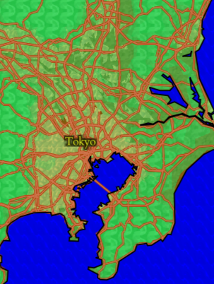 When zooming into the map, the green land cover goes away and reveals a base brown with a different bumpy texture.