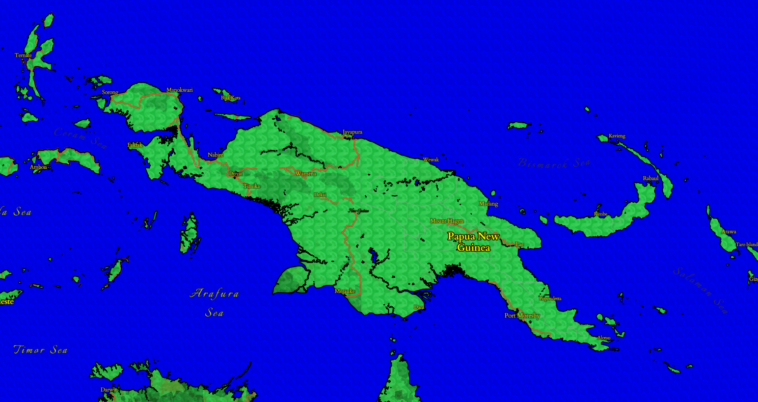 More zoomed out, we can see the black border between land and water, like on Papua New Guinea.
