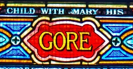 The yellow type with a black halo pulls from the serif-styled labels in religious stained glass.